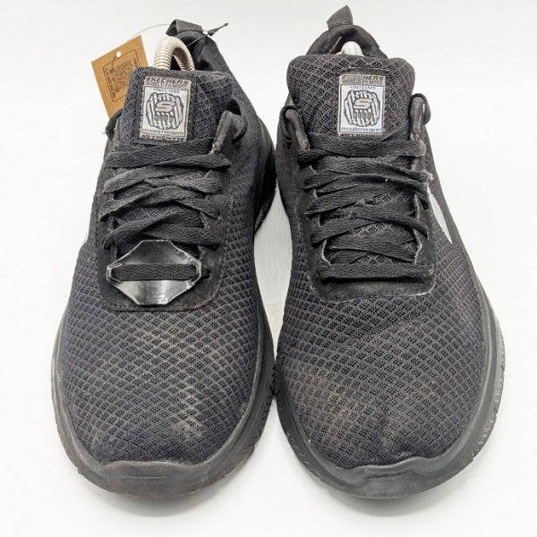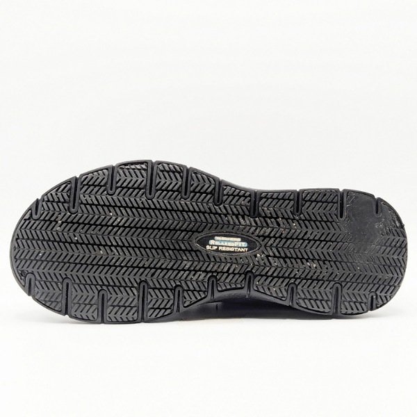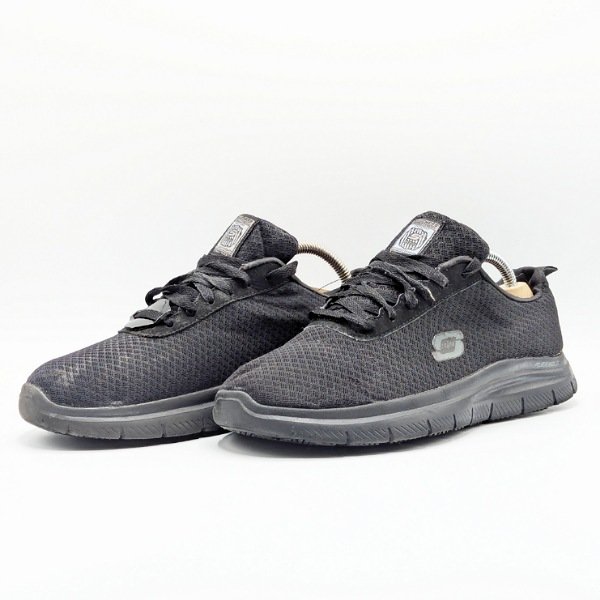 The Skechers Work Relaxed Fit Slip-Resistant shoes offer roomy comfort with a durable synthetic upper designed for workplace safety. Featuring Air-Cooled Memory Foam cushioning and a Skech-Air visible airbag midsole, they provide all-day support and shock absorption. The slip-resistant outsole ensures reliable traction, making them ideal for demanding environments. Crafted with high-quality materials, these shoes have been carefully inspected and are in excellent condition, with visible signs of wear.