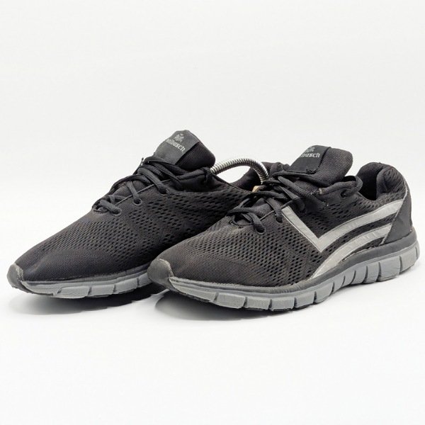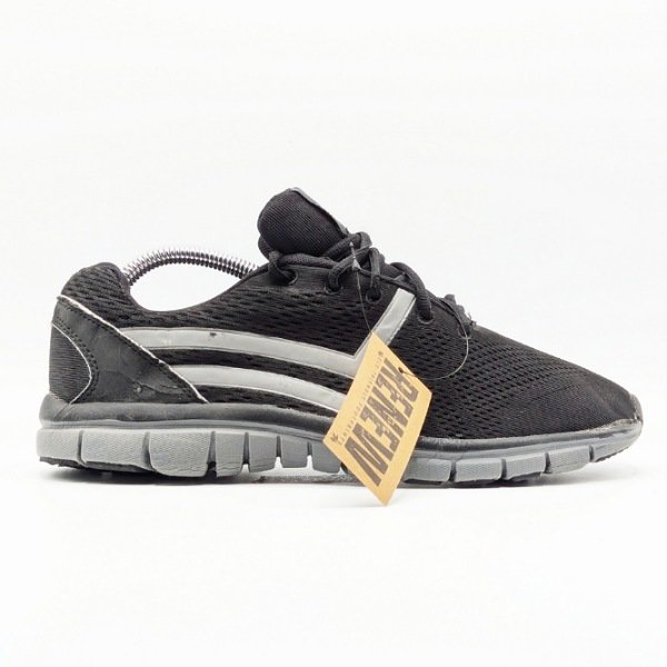The shoe features a mesh upper, a lace-up closure, and a gray sole. Crafted with high-quality materials, these shoes have been carefully inspected and are in excellent condition, with visible signs of wear.